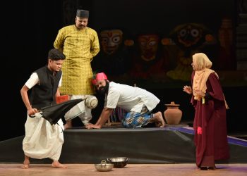 Artists from Nayeeka, Balasore, perform Bhakta Jholiya at Rabindra Mandap, Sunday.