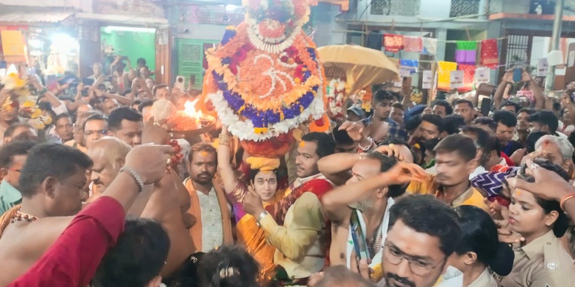 Artists from Nayeeka, Balasore, perform Bhakta Jholiya at Rabindra Mandap, Sunday.