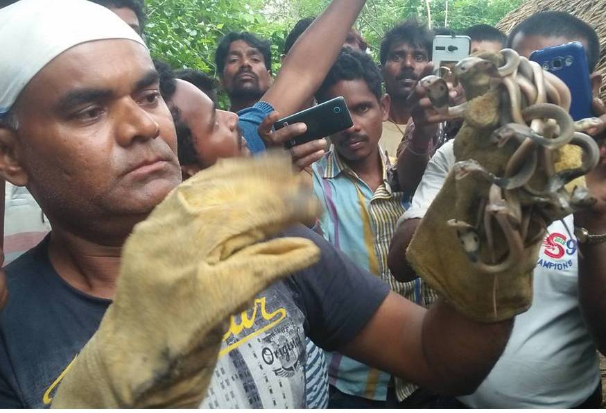 Sheikh arrived in the village and caught 11 hatchlings, while the larger snakes managed to escape. Believing in superstitions, locals as well as Jena are in a panic as they fear that the escaped snakes might attack people seeking revenge.