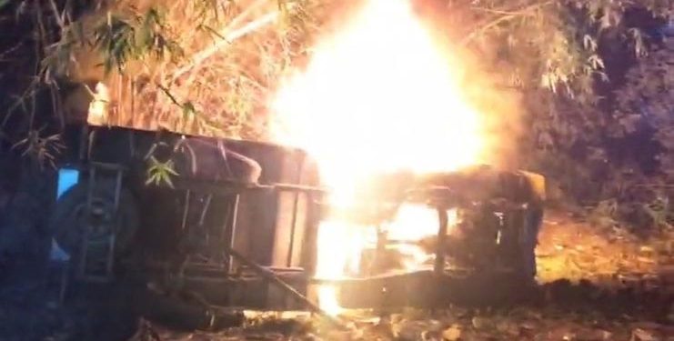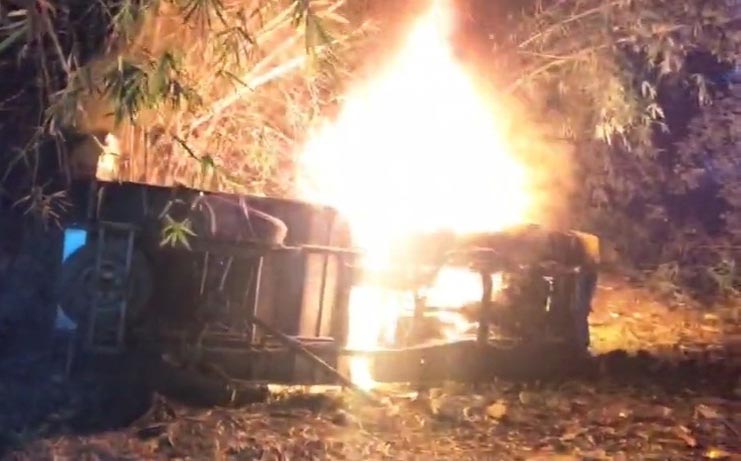 As news of the deaths spread, an agitated crowd gathered at the spot and set the pickup van on fire. Two fire engines arrived at the scene and brought the blaze under control. According to the police, the pickup van bearing registration number OR-01-Q-7854 was allegedly transporting cattle cruelly from Agarapada towards Bhadrak district. On being tipped off, cattle activists started following the vehicle. In an attempt to escape, the driver reportedly sped up, lost control and overturned the van near Gelatua. Bhadrak Rural police have seized the charred vehicle and launched a probe.