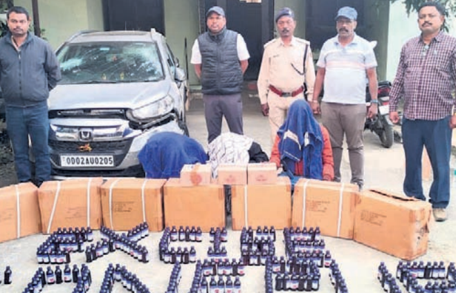 Sonepur: Excise officials in Subarnapur district seized 1,500 bottles of ESkuf cough syrup and arrested three men Wednesday following a high-speed chase on National Highway 57.