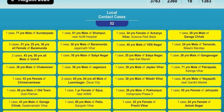Primary contacts & nearby houses are being quarantined, sanitised & will be under active surveillance. pic.twitter.com/EUDLxHr9Dn— BMC (@bmcbbsr) August 8, 2020