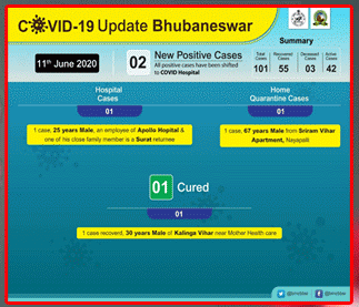 Bhubaneswar: The state capital reported two more positive coronavirus cases Thursday according to the Bhubaneswar Municipal Corporation which gave the information in a tweet.