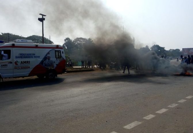 Hundreds of slogan-shouting agitators demonstrated with placards and staged road blockades at various places including Khariar, Komna, Udyanabandha, Kurumapuri, Sinapali and Boden in support of their demand. Trucks remained stranded in this stretch of the National Highway for several hours.