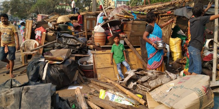 Sources said that the dwellers who had opposed a similar eviction drive launched earlier were seen cooperating with the civic body and police officials.