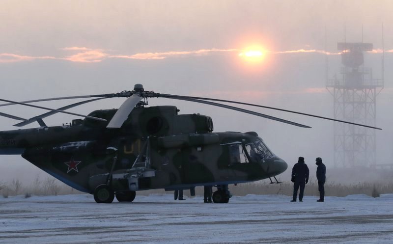 The crew radioed that they were feeling fine. Russian rescue teams in helicopters and all-terrain vehicles rushed to the landing site to extract the astronauts from the capsule charred by a fiery ride through atmosphere.
