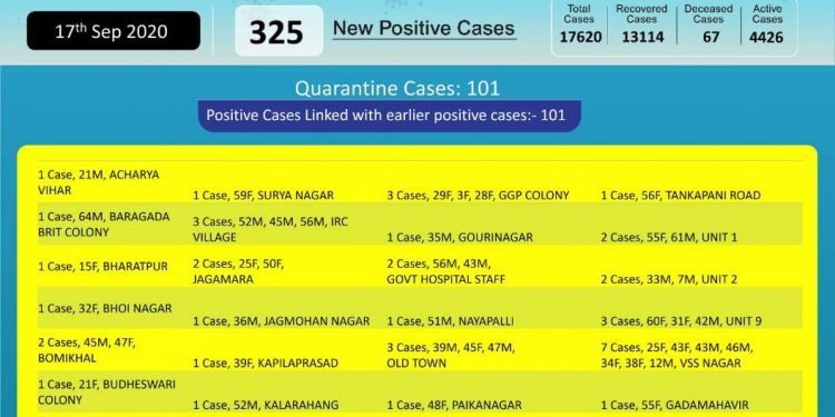 Primary contacts & nearby houses are being quarantined, sanitized & will be under active surveillance. pic.twitter.com/LDhJ2M81S6— BMC (@bmcbbsr) September 17, 2020