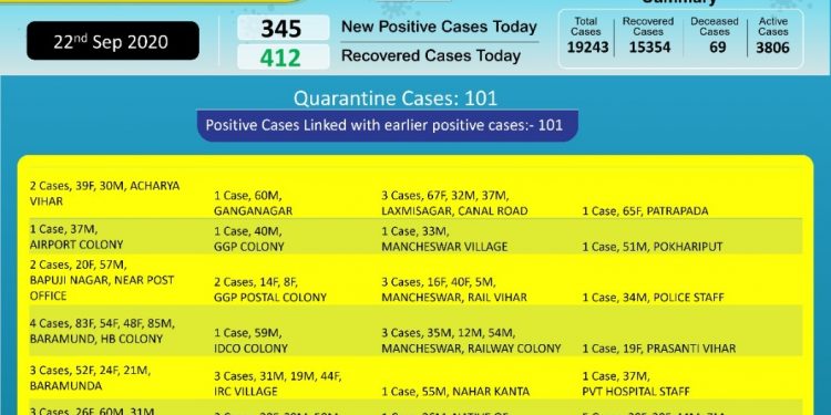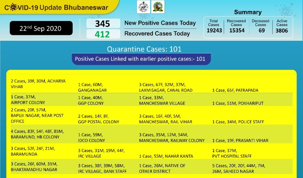 Bhubaneswar: As many as 345 new COVID-19 cases were detected under Bhubaneswar Municipal Corporation (BMC) limits in last 24 hours, BMC said Tuesday.