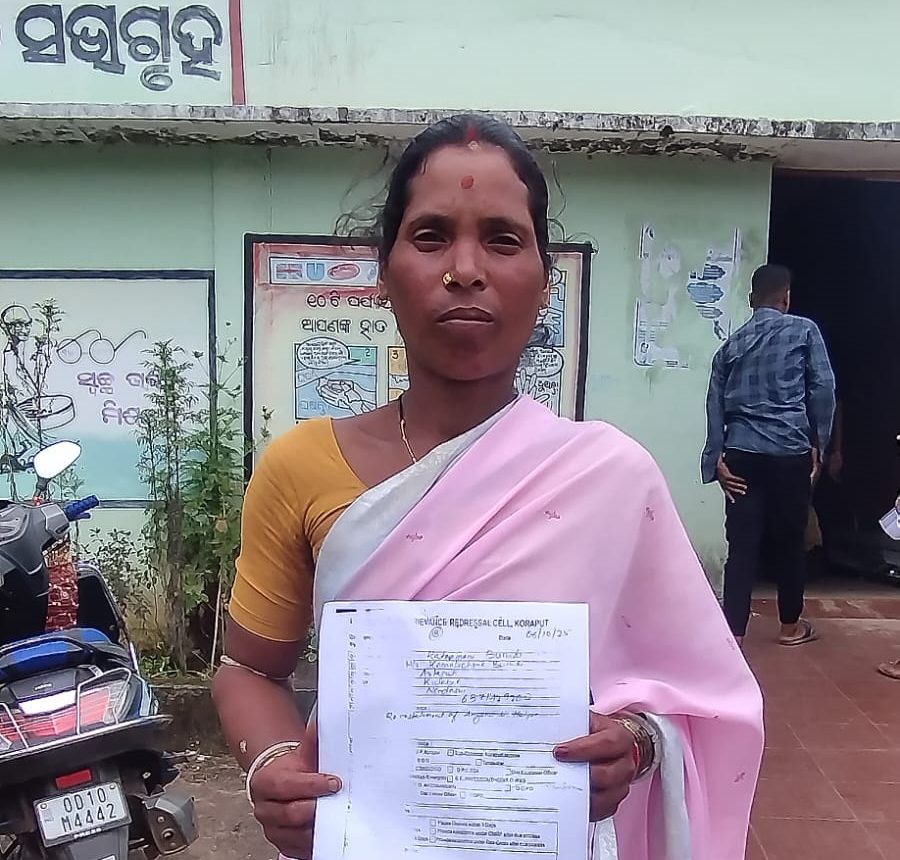 During the public hearing held in Nandapur Monday, Burudi submitted a written complaint along with supporting documents to acting Koraput Collector (ADM) Tapan Kumar Nayak. She explained that she was appointed as an Anganwadi helper in 2010 at the age of 26, but her date of birth was incorrectly entered as 1964 instead of 1984 by an office employee. The error went unnoticed for years.