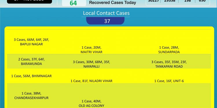 According to a notification issued by the civic body, as of Tuesday, 30,227 persons have tested positive for COVID-19 in Bhubaneswar out of which 29,358 have recovered. While there are 650 active cases, 198 persons succumbed to the disease.