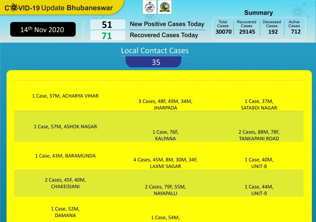24 hrs under the BMC area on 14th Nov (till 9am) pic.twitter.com/kH49x0mDgX— BMC (@bmcbbsr) November 14, 2020