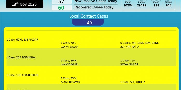 Bhubaneswar: As many as 57 new COVID-19 cases were detected under Bhubaneswar Municipal Corporation (BMC) limits in last 24 hours, BMC said Wednesday.