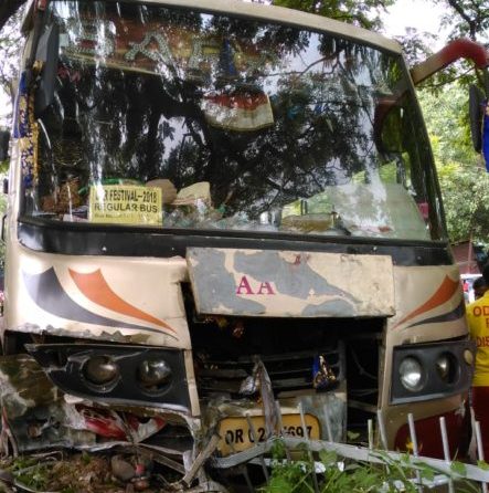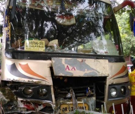 Bhubaneswar: About six persons were injured after a bus rammed into a tree near Kalpana square under Badagada Police Station Tuesday. The bus was coming from Puri to Bhubaneswar when it lost control and hit a tree.