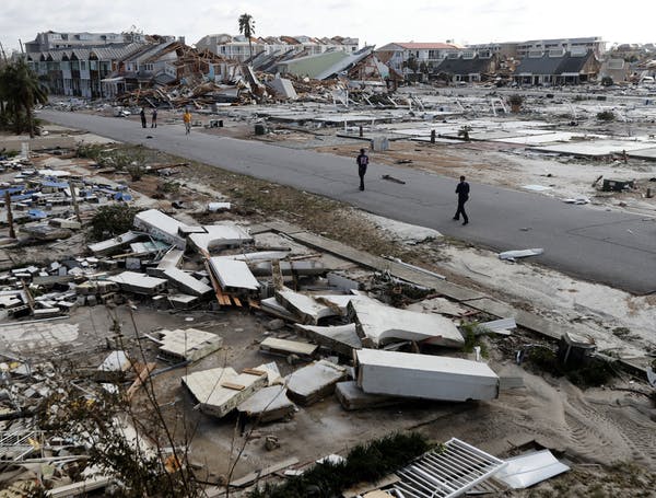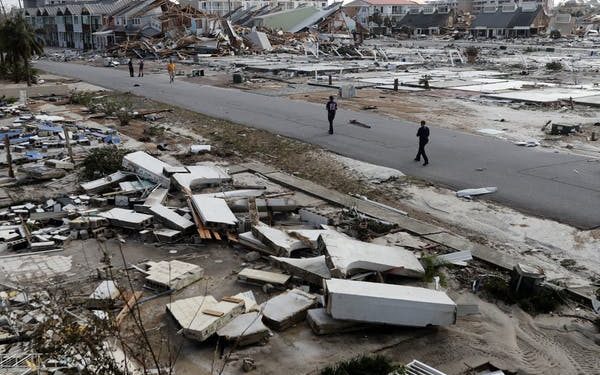 The concrete slabs of the structure appear to have pancaked, falling one atop another.