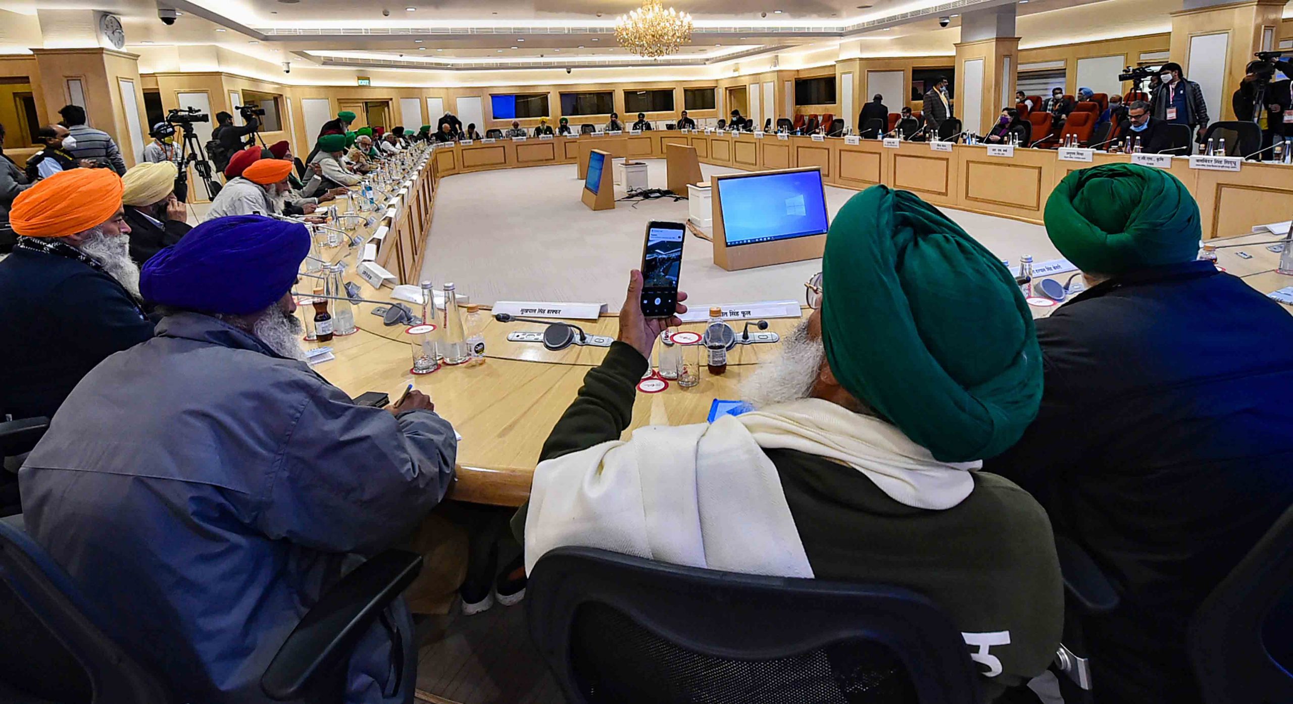 Union Agriculture Minister Narendra Singh Tomar, Railways, Commerce and Food Minister Piyush Goyal and Minister of State for Commerce Som Parkash, who is an MP from Punjab, are holding the talks with the representatives of 41 farmer unions at the Vigyan Bhawan.