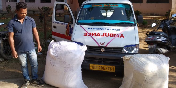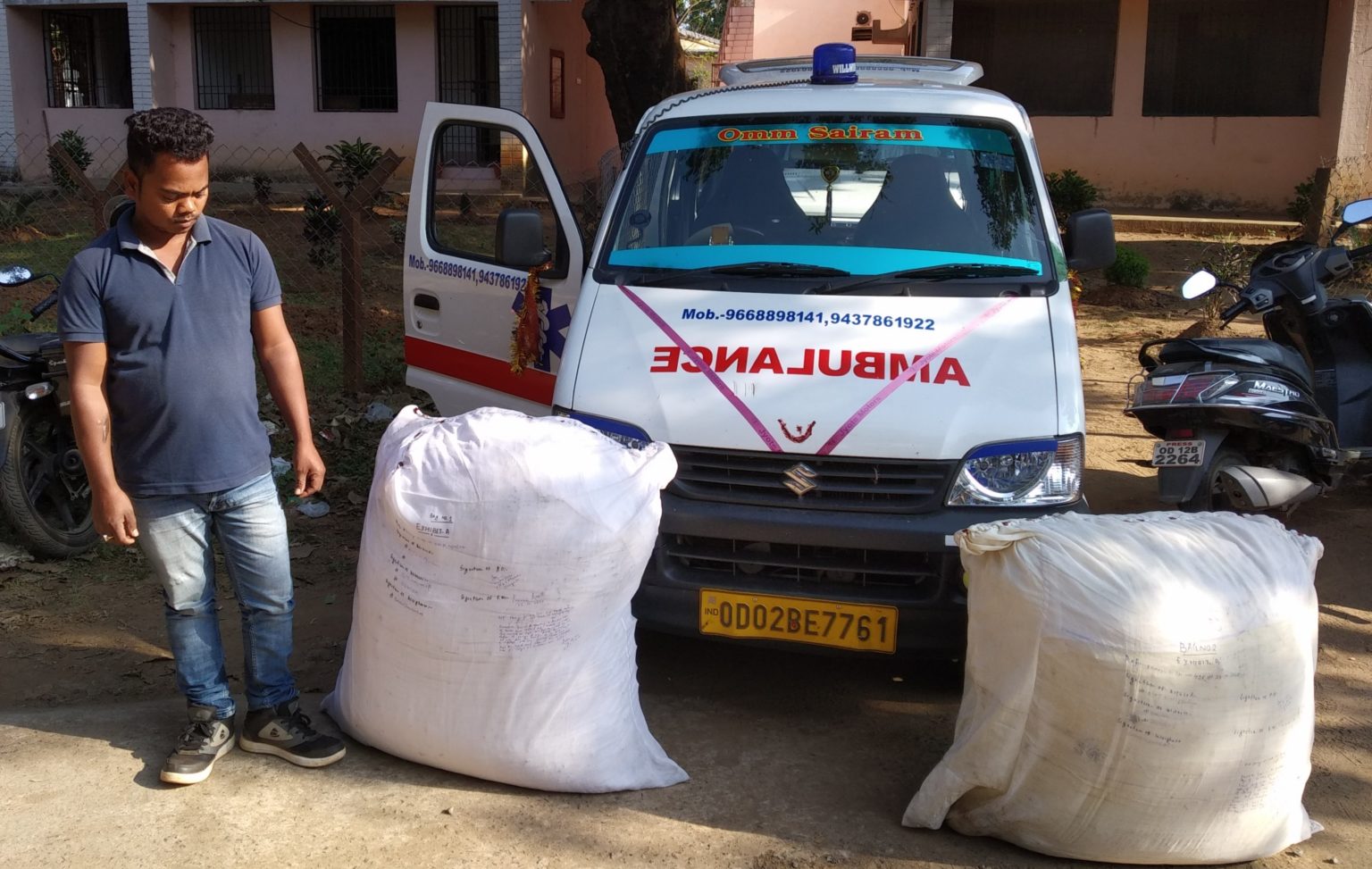Phulbani: Two persons were arrested in Kuduraha locality of Bhrugijodi panchayats under Phiringia police station limits of Kandhamal district Sunday for transporting 82kg cannabis worth Rs 5, 00,000 illegally in an ambulance. Among the two arrested, one has been identified as Ajay Kumar Pradhan of Ritamati area under Jankia police limits in Khurda district. He is also the owner of the vehicle.