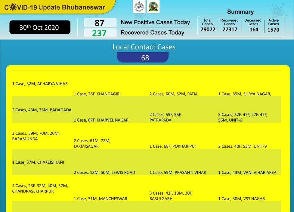 87 new cases take Bhubaneswar COVID-19 caseload to 29,072