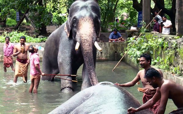 Everyone likes to enjoy a spa. Not only humans, but even the elephants love and enjoy a SPA. Every year in the month of July, lucky elephants of the well-known Guruvayurappan Hindu Temple in Kerala enjoy one full day of pampering at the Punnathoor Cotta Elephant Yard.