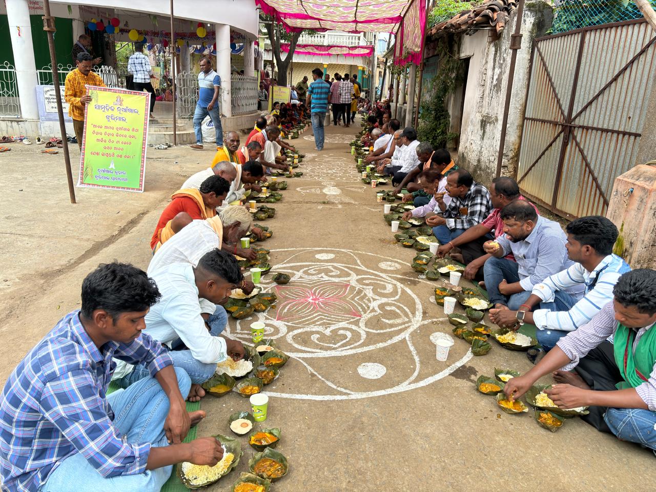 Thereafter, families offered prayers to their household deities. Then started the community cooking. After the cooking was over, volunteers served the food. Earlier, the seniors were served first, but the tradition has stopped these days. The platter included traditional dishes such as rice, dal, khiri, pitha, mixed vegetables etc. MLA Sundargarh Yogesh Kumar Singh who participated in the feast as a guest said, “I have never seen such bonding among villagers. This is rare and special. This can set an example of brotherhood and harmonious living.”