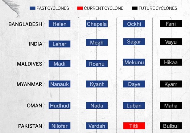 Interestingly, in South East Asia, tropical cyclones are named by different countries in the region. Titli was named by Pakistan and as per the format, the next cyclone will be named Gaja which is coined by Thailand.
