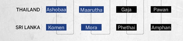 For the Indian Ocean region, deliberations for naming cyclones began in 2000 and a formula was agreed upon in 2004. Eight countries in the region – Bangladesh, India, Maldives, Myanmar, Oman, Pakistan, Sri Lanka and Thailand – all contributed a set of names which are assigned sequentially whenever a cyclonic storm develops.