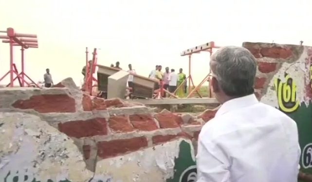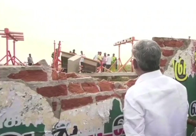 Tamil Nadu Minister Vellamandi Natrajan visited the spot and inspected the damage to the wall, adjacent to a state highway.