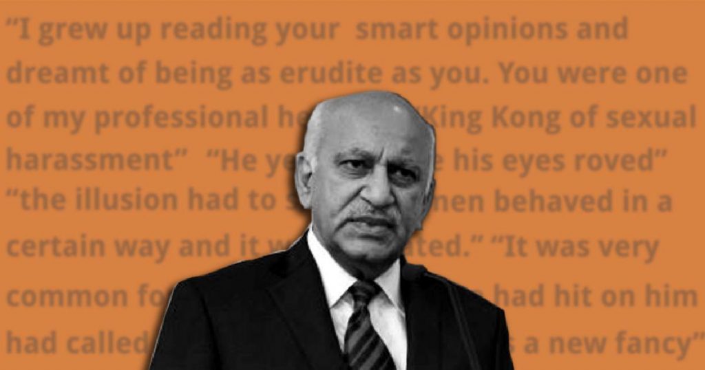 Akbar has been accused of sexual harassment by several women journalists who had worked under his editorial leadership at various publications. He has denied the charges as “false, wild and baseless”.