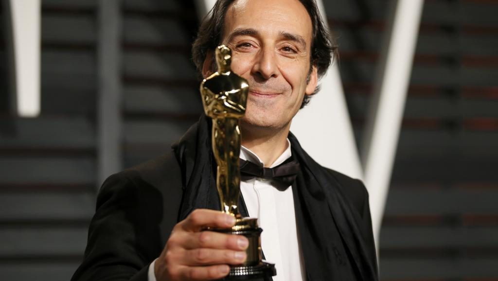 Composer Alexandre Desplat holds his award at the 2015 Oscars. (Reuters)