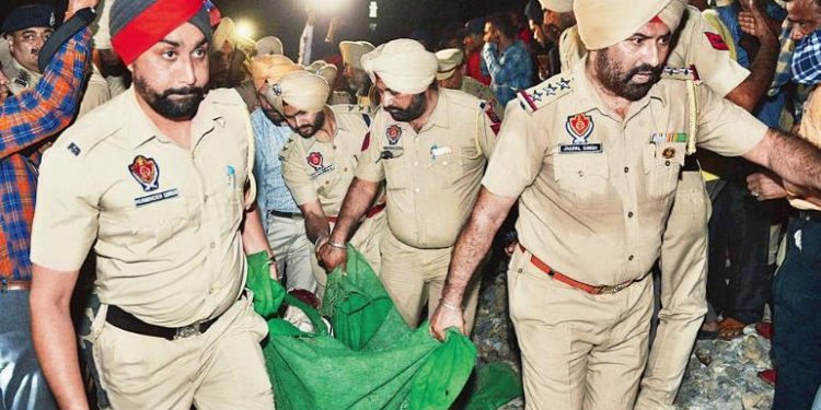 Friday, a 700 strong crowd was watching a huge Ravana effigy go up in flames amid exploding crackers when on the Joda Phatak tracks near Dhobi Ghat the Jalandhar-Amritsar DMU passenger train heading to Hoshiarpur from Amritsar came hurtling down around 7 p.m.