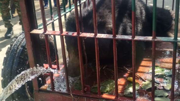 The forest officials reached the spot and tried to rescue the bear but it turned aggressive.
