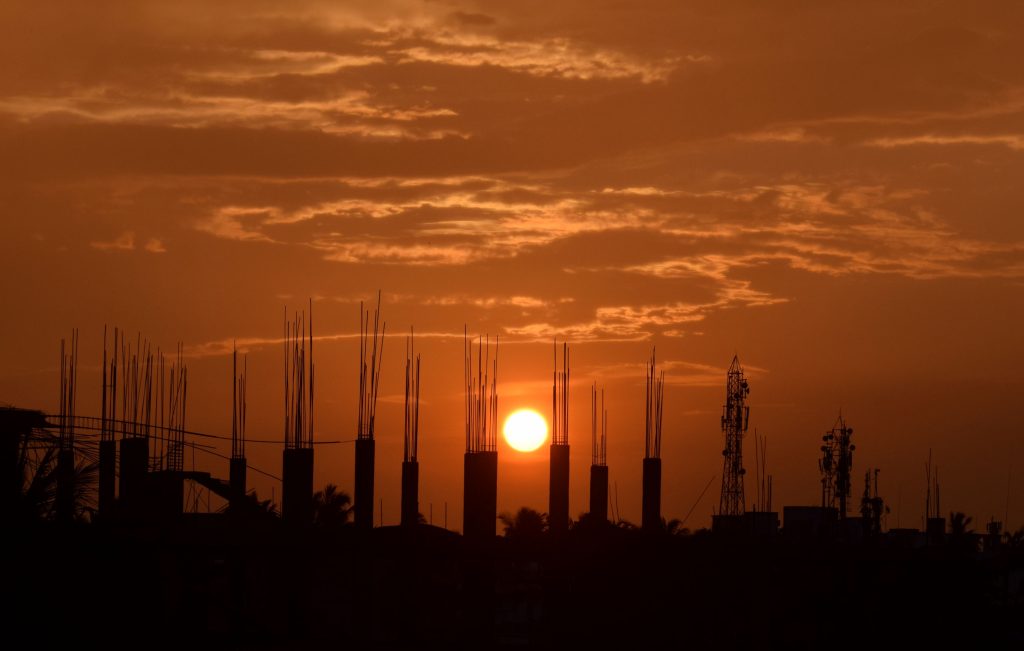 Orissa POST captures the picturesque image of sunset on the outskirts of the capital city even as an under-construction building wears a deserted look amidst coronavirus scare