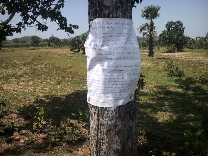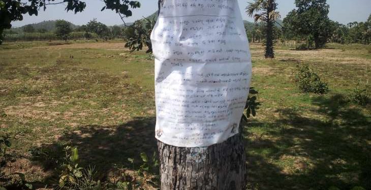 Malkangiri: The Sampoorna Hinshamukta Abhiyan (SHA) put up anti-Maoist posters at Kurub village here Monday.