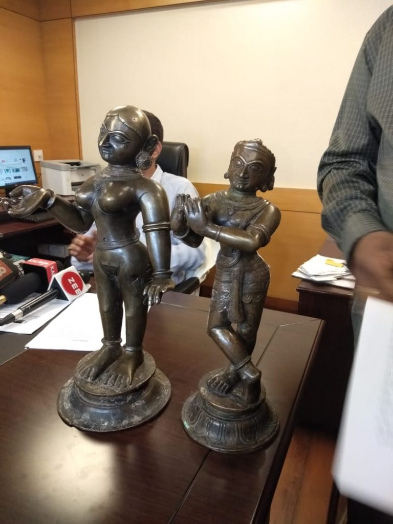 Bhubaneswar: Special task force (STF) officials Wednesday claimed to have arrested a 46-year-old man here after recovering two antique idols estimated to be around Rs 2.5 crore in the international market.