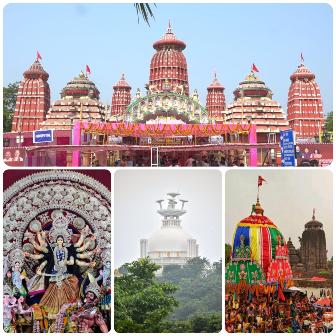 The city also comes alive during major festivals such as Durga Puja, marked by elaborately decorated pandals and community celebrations; ‘Maha Shivaratri’, when lakhs of devotees throng Lingaraj Temple for night-long prayers and rituals; and ‘Ashokashtami’, highlighted by the grand ‘Rukuna Rath’ procession, reflecting Bhubaneswar’s deep-rooted spiritual traditions and vibrant public celebrations. Other state-wide festivals like ‘Raja Parba’, ‘Pana Sankranti’, and Holi are celebrated with pomp and gaiety across the city.