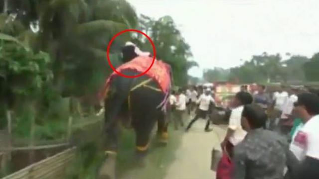 #WATCH: Newly-elected deputy speaker of Assam assembly Kripanath Mallah falls off an elephant. He was being welcomed by his supporters in