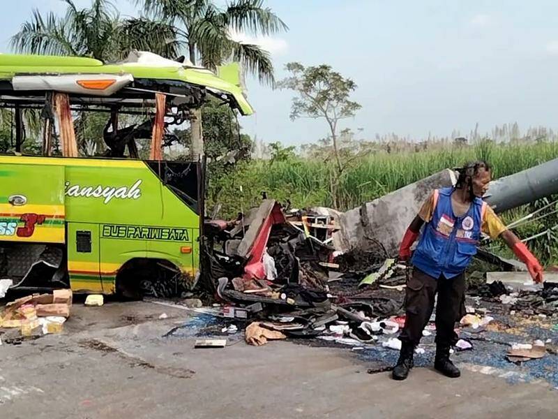 The inter-province bus was travelling from the capital Jakarta to the country’s ancient royal city of Yogyakarta when it overturned while entering a curved exit ramp at the Krapyak tollway in Central Java’s Semarang city, he said.