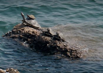 Turtles rest atop rocks at Cuttack Jobra barrage A man buys turmeric leaves for Chhath Puja at Ranihat...