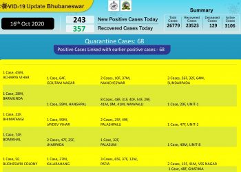 Bhubaneswar: As many as 243 new COVID-19 cases were detected under Bhubaneswar Municipal Corporation (BMC) limits in last 24 hours,...