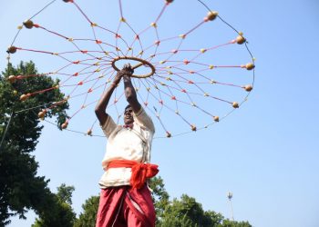 Display of traditional martial arts at PMG Square in Bhubaneswar on occasion of 121st birth anniversary of Harekrushna Mahatab...