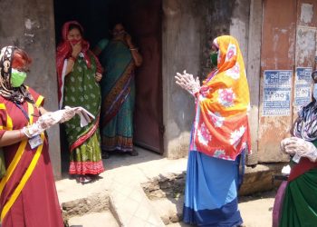 Healthworkers conduct door-to-door survey at Sutahaat area in Cuttack, Friday