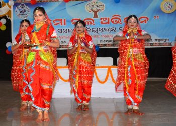 Students take part in a cultural programme at the district-level festival of Mo School Abhiyan in Sambalpur
