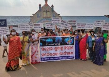 Members of third gender community under Ganjam Kinnar Mahasangh, generate awareness on preventive measures against Coronavirus at Berhampur