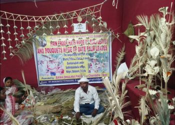 A craftsman selling handicraft items made out of date palm leaves at an exhibition-cum-fair in Balasore