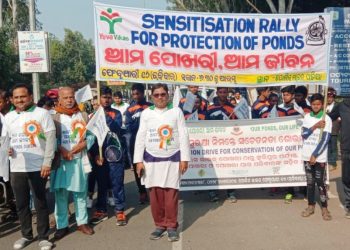 An awareness rally demanding protection of ponds being taken out in Balasore, Monday