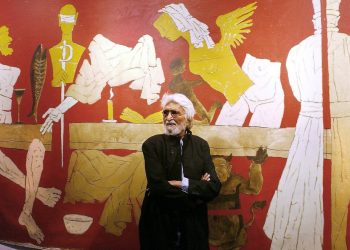 New York: A massive 10-foot tall mural-sized painting created in 1975 by legendary artist M F Husain as a backdrop...