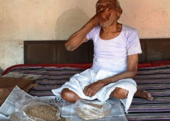 Ranchi: In a bizarre habit, an octogenarian, Ram Ikbal Choube of Rajdaha village in Pakur district of Jharkhand is eating...