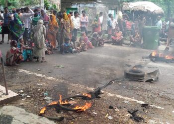 Kendrapara: The residents of Samgudia (Hatapada) village in Ward No-1 of Kendrapara municipality Friday resorted to agitation by burning tyres...