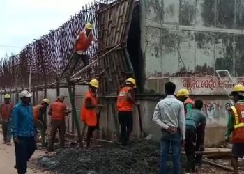 Jatni: Passerby and labourers had a narrow escape after a concrete building frame of side wall at the under-construction overbridge...