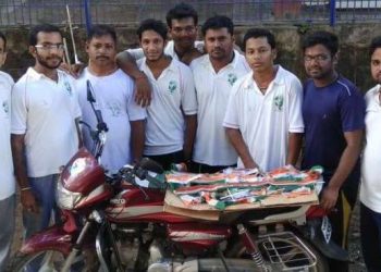 Berhampur: In a noble gesture, the green activists of Sabuja Bahini, a city-based group, cleaned littered flags off the streets...
