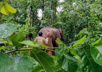 Champua: A team of 35 forest officials treated an injured elephant, which had been roaming in Champua forest range of...
